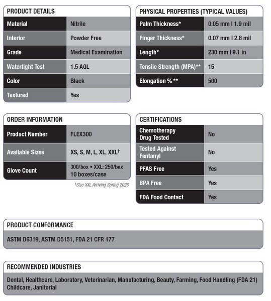 FLEX300™ Nitrile Exam Gloves Palm: 1.9 Mil | Finger: 2.8 Mil